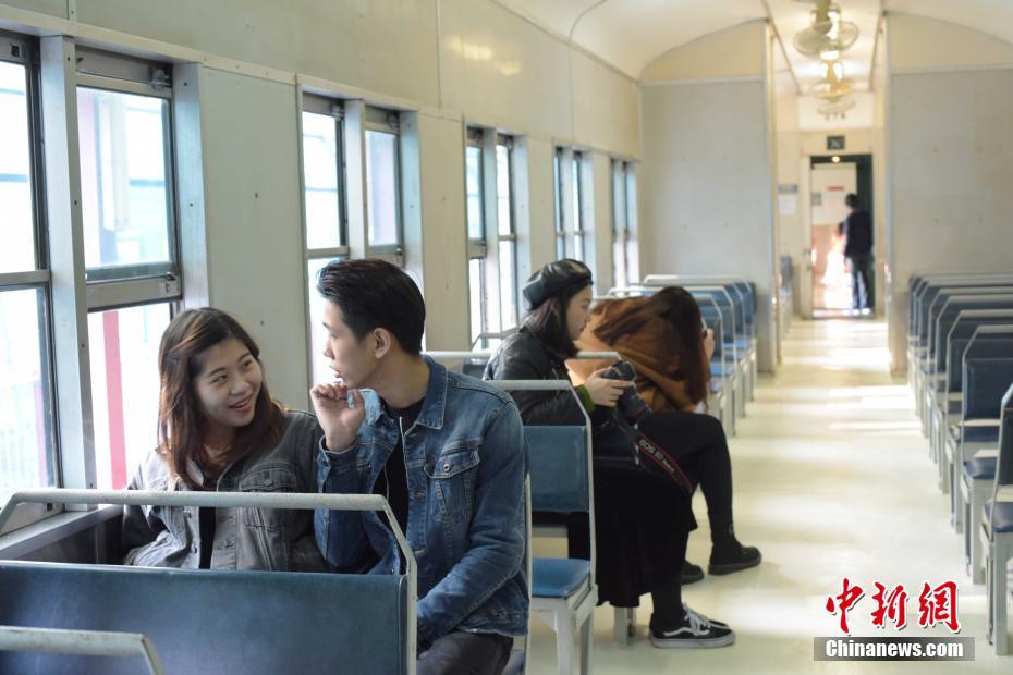 1月17日,市民游客於火車上拍照。香港鐵路博物館位於大埔墟市中心,面積6,500平方米,是在舊大埔墟火車站原址上改建而成的戶外博物館。舊火車站大樓建於1913年,是一座風格獨特的金字頂中國傳統建築。火車站於1984年被列為法定古跡,後經修復及重新佈置後,博物館於1985年至今開放予市民參觀。中新社記者 李志華 攝