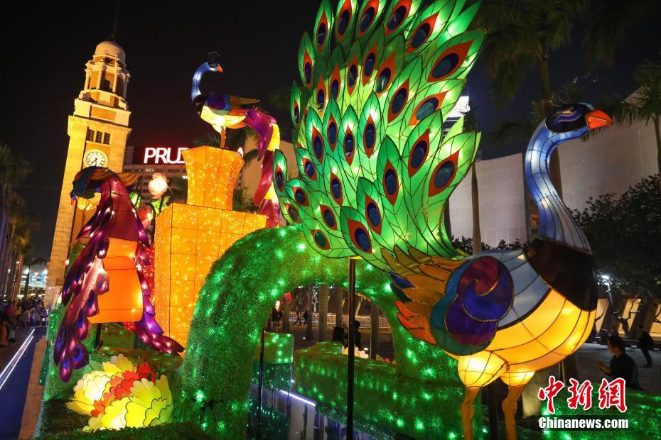 2月13日,元宵佳節將至,香港節日氣氛正濃。一組以中國傳統吉祥鳥孔雀為主題的春節專題綵燈展1月25日至2月24日在毗鄰維港的香港文化中心露天廣場舉行。中新社記者 謝光磊 攝