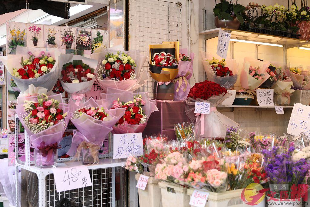 今日(14日)情人節,不少人選擇以花束表達心意,旺角花墟就擠滿前來選購情人節花束和年花的市民。不少花店已由年花主題變為情人節主題,店舖擺放出各式各樣的情人節花束設計,吸引不少男士查詢及預訂。有男士表示,300多元起跳的花束已是最基本消費,雖然已經結婚,但還是想給太太一個驚喜。(大公文匯全媒體記者 李湃豐 攝)
