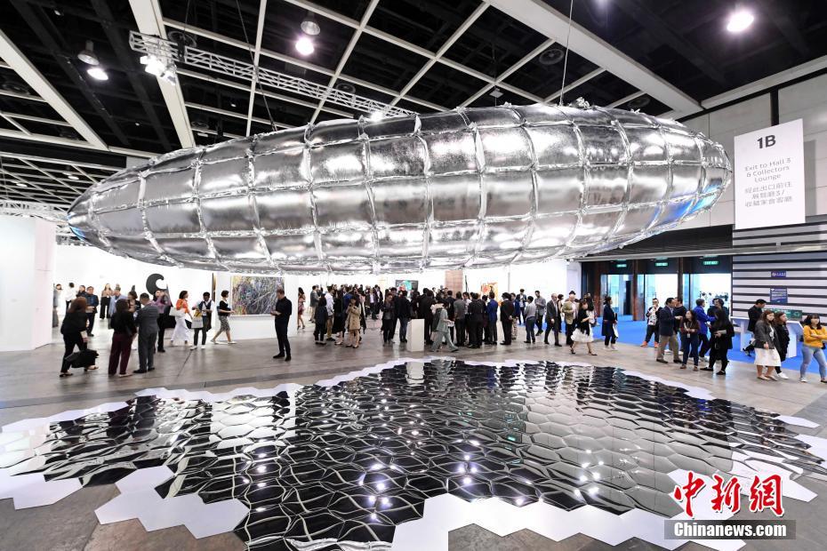 3月27日,藝術家李昢的10米長柏林飛船藝術品,相當觸目。香港巴塞爾藝術展吸引來自36個國家及地區包括亞洲、歐洲、南北美洲、中東及非洲,共242間優秀的國際藝廊。參展藝廊呈獻由新晉及知名藝術家創作的頂級現代及當代藝術作品。當中,藝聚空間展區呈獻12件博物館規模裝置藝術,其中八件於香港展會首次展出,展區主題為Still We Rise,回顧過去並思索未來,聚焦於當下迷失與無常的議題,展區將來自不同背景及世代的藝術家集聚一堂,他們將平平無奇的材料重新組合,以此來展現當今世界的複雜性。 中新社記者 李志華 攝