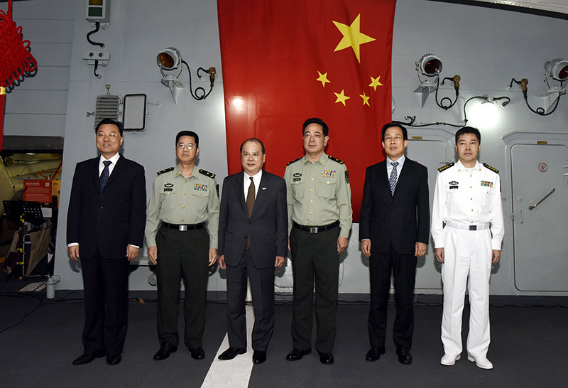 為答謝香港社會各界,編隊5月4日晚在海口艦舉行了甲板招待會。我辦副主任楊建平應邀出席招待會,並與特區政府政務司司長張建宗,外交部駐港特派員公署特派員謝鋒,駐港部隊司令員陳道祥、政委蔡永中等嘉賓共同主禮。特區政府、中央駐港機構、中資企業及香港社會各界代表100餘人出席。