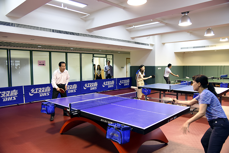 楊建平副主任與來賓切磋乒乓球。(圖片來源:中央政府駐港聯絡辦)