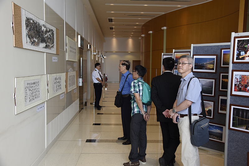 來賓觀看我辦員工書畫作品展。(圖片來源:中央政府駐港聯絡辦)