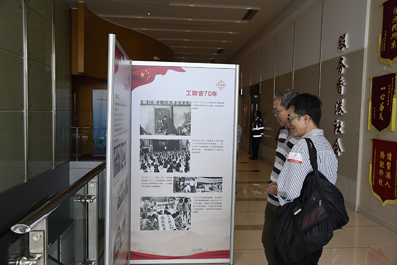 來賓觀看工聯會70周年展。(圖片來源:中央政府駐港聯絡辦)