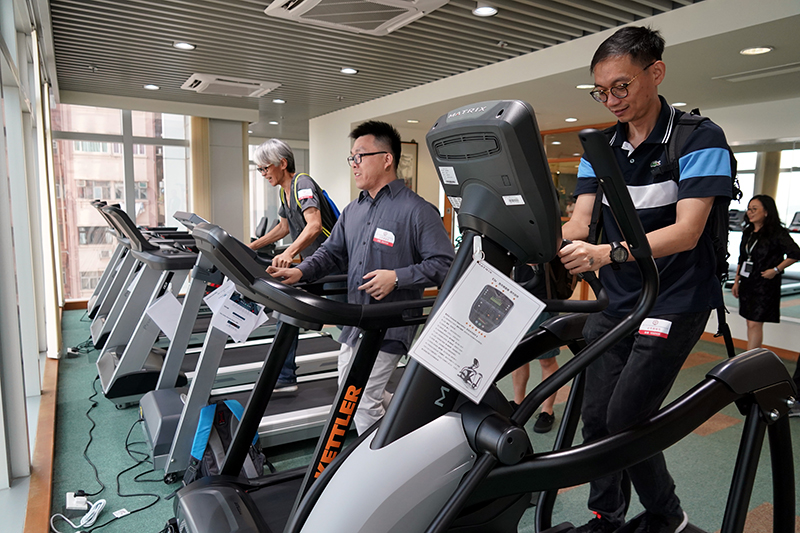 來賓在我辦文體活動室體驗。(圖片來源:中央政府駐港聯絡辦)