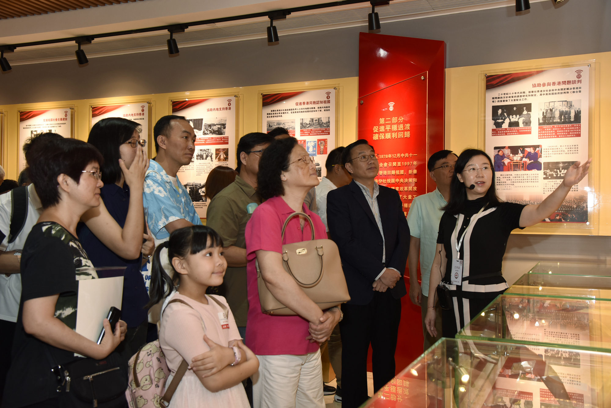 何靖副主任陪同來賓參觀我辦辦史展。(圖片來源:中央政府駐港聯絡辦)