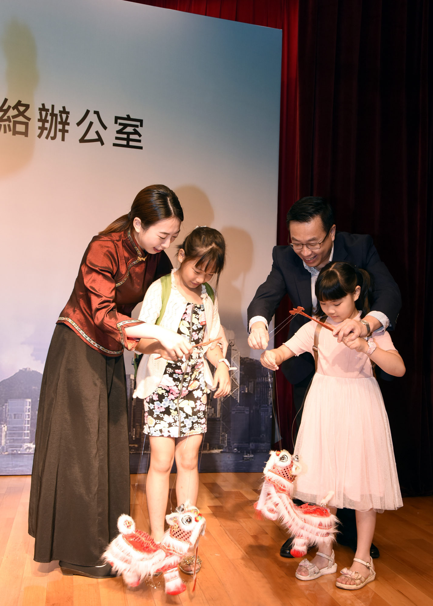 何靖副主任與小來賓們一同體驗操縱提線木偶。(圖片來源:中央政府駐港聯絡辦)