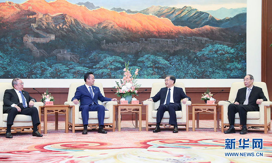 5月29日,中共中央政治局常委、全國政協主席、中國和平統一促進會會長汪洋在北京會見以姚志勝為團長的中國和平統一促進會香港總會參訪團全體成員。 新華社記者 姚大偉 攝