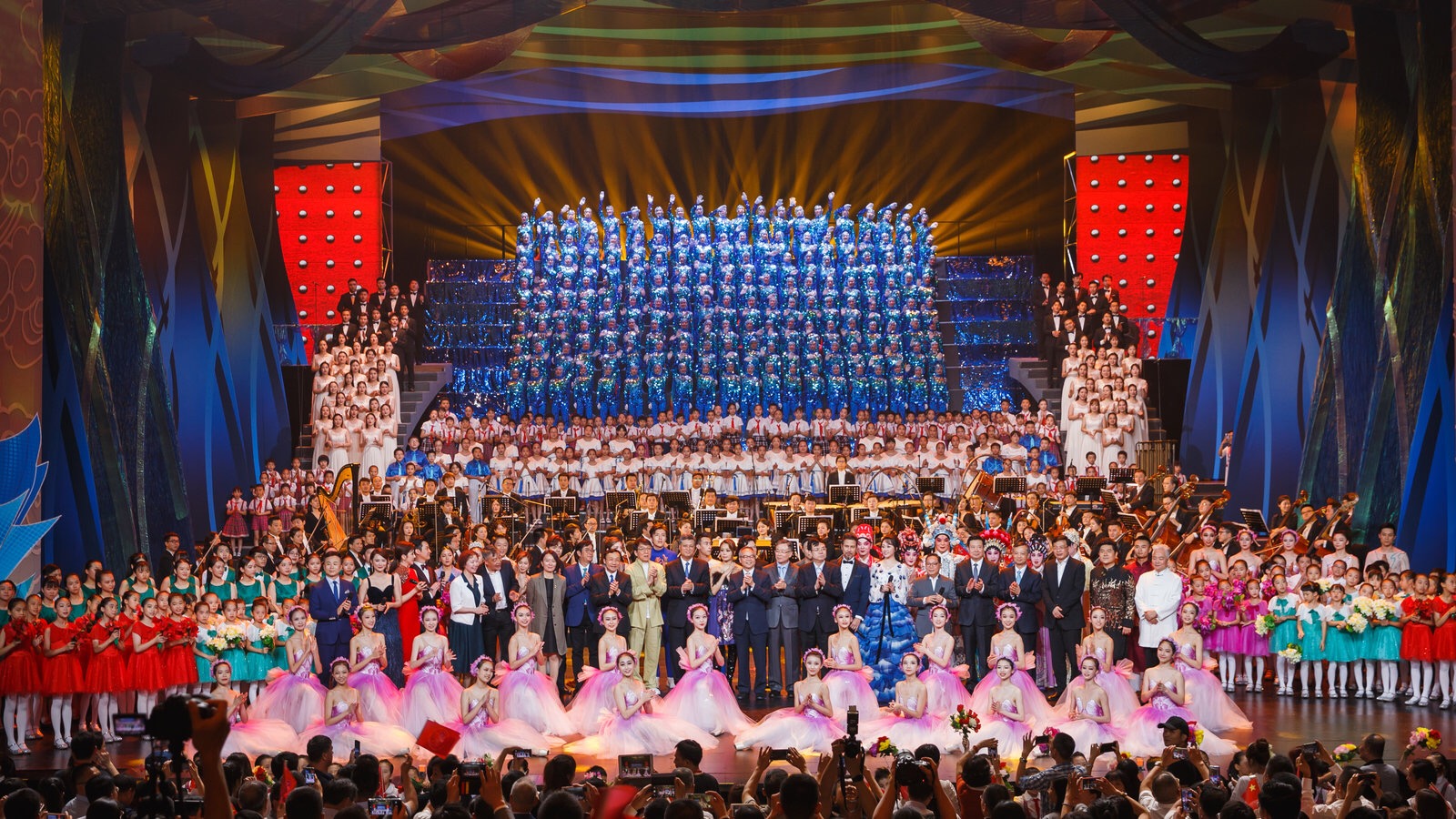 嘉賓與演出人員合影。(圖片來源:中央政府駐港聯絡辦)
