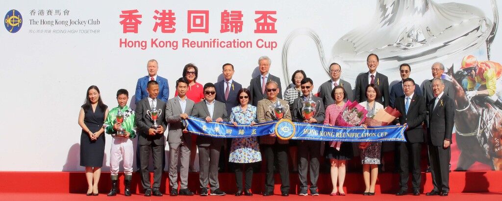 本網訊 7月1日,為慶祝香港回歸祖國22周年,香港賽馬會在沙田馬場舉辦「香港共慶回歸賽馬日」活動。我辦副主任盧新寧、外交部駐港特派員公署副特派員宋如安等出席並為「回歸杯」賽事頒獎。