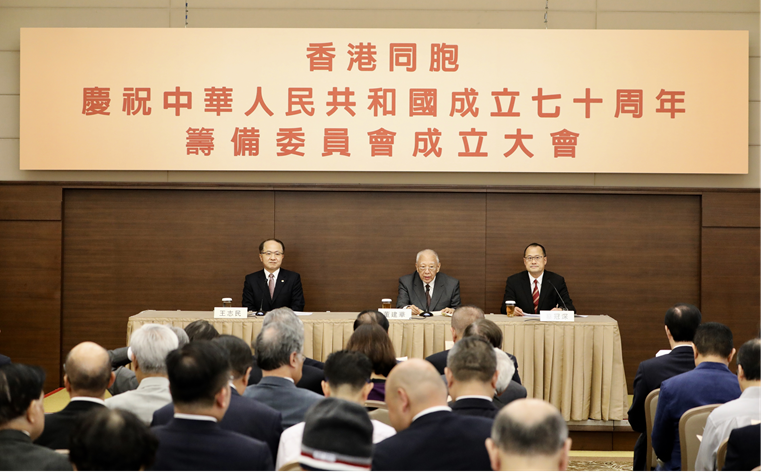 籌委會成立大會由全國政協副主席、香港同胞慶國慶籌委會常設委員會主席董建華主持。大會通過了本年度籌委會主席團名譽主席、主席團主席、主席團顧問、主席團成員、正副秘書長及各組正副主任人選名單,全港近700位各界人士出任籌委會成員。籌委會定於10月2日及3日晚在香港體育館分別舉辦文藝晚會及青年音樂會,並同步通過電視台、電台和網絡平台播出,與香港市民共慶中華人民共和國成立70周年。