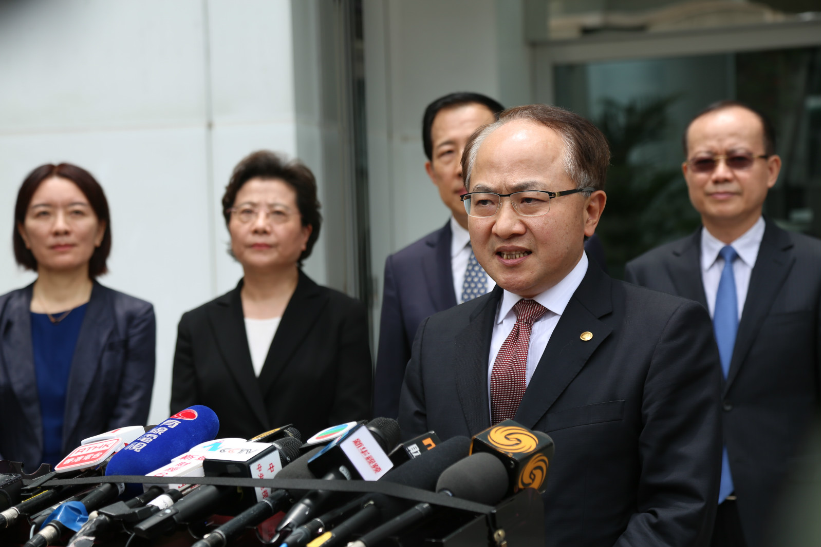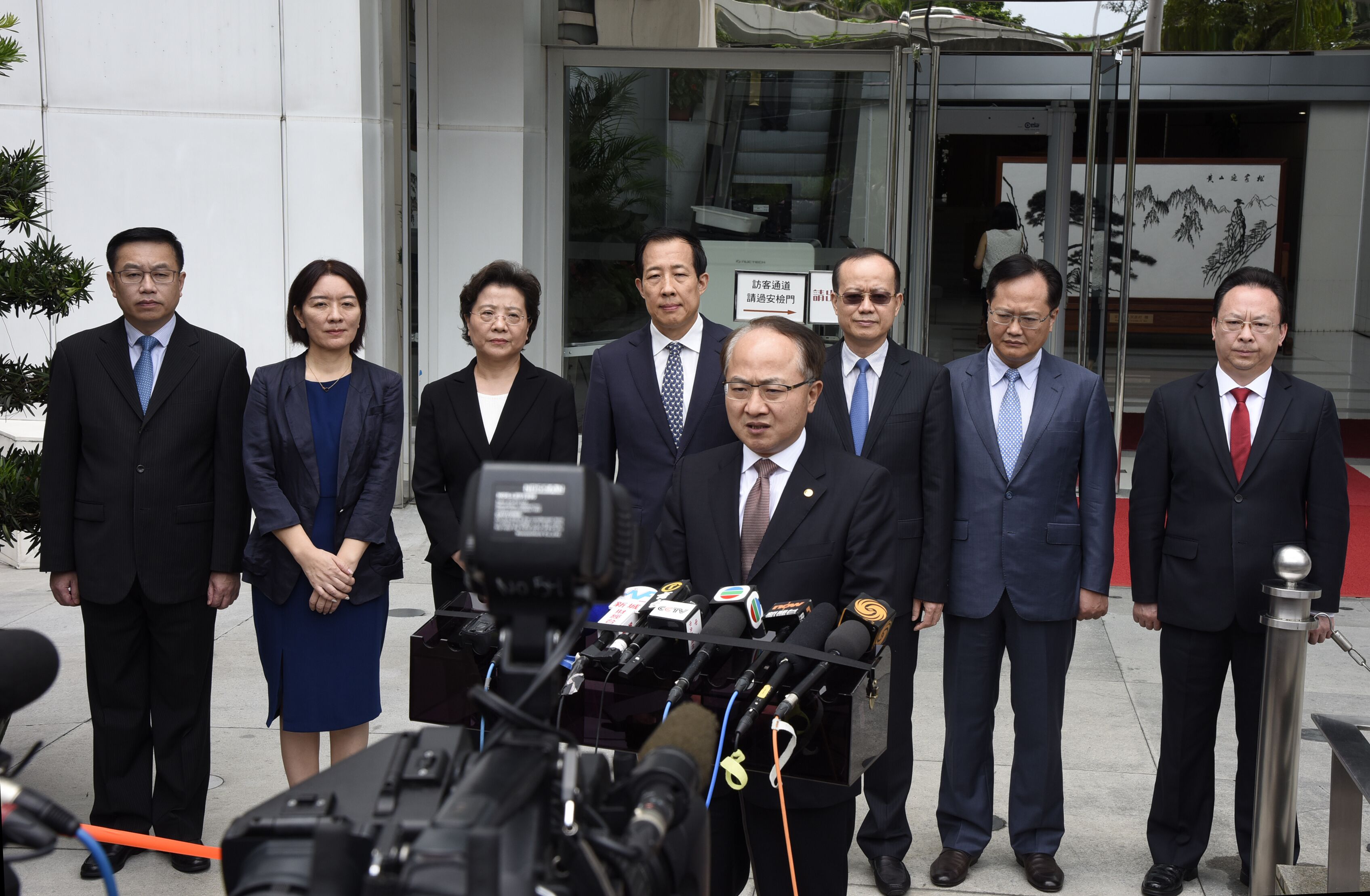 王志民主任和我辦各位副主任集體會見記者。(圖片來源:中央政府駐港聯絡辦)