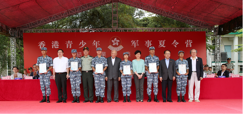 本網訊 7月28日,第十五屆香港青少年軍事夏令營結業典禮在新圍軍營隆重舉行。全國政協副主席董建華、香港特區行政長官林鄭月娥、我辦主任王志民、解放軍駐港部隊司令陳道祥、外交公署駐港副特派員宋如安等共同主禮,並與200餘名嘉賓和家長共同觀看了匯報表演,見證了營員們15天的參營收穫與成長。