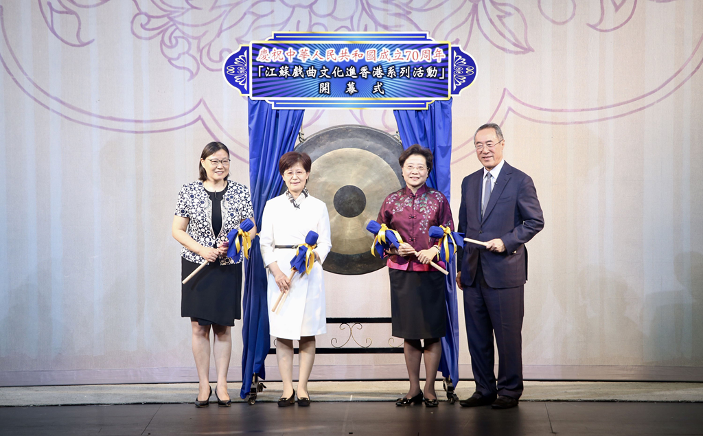 本網訊 7月26日,江蘇省海外聯誼會和香港江蘇社團總會在西九文化區戲曲中心大劇院共同主辦慶祝中華人民共和國成立70周年及香港回歸祖國22周年「江蘇戲曲文化進香港系列活動」開幕式。我辦副主任仇鴻應邀出席,並與江蘇省海外聯誼會副會長馬連美、香港江蘇社團總會會長唐英年、無錫市政府新聞辦公室主任陸惠玲共同主禮啟動儀式。