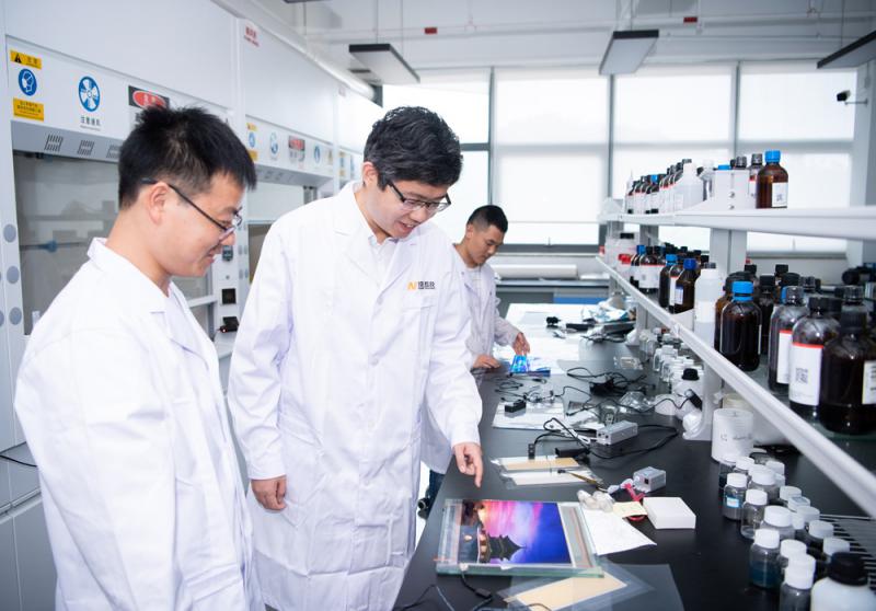大灣區為創新創業提供難得的機遇,眾多港澳青年創業者選擇在這裏落腳扎根。圖為澳門創業者雷震(中)在珠海的公司內研究柔性透明導電材料。