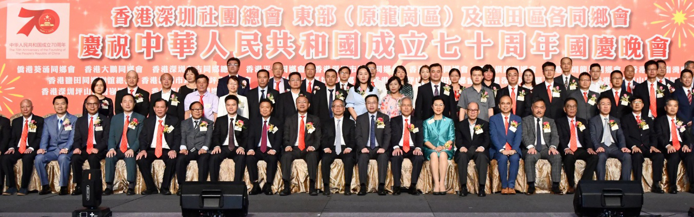 本網訊 8月24日, 我辦副主任何靖應邀出席香港深圳社團總會東部(原龍崗區)及鹽田區各同鄉會在亞洲國際博覽館舉辦的慶祝中華人民共和國成立七十周年國慶晚會,並與香港特區政府民政事務局局長劉江華,深圳市委常委、統戰部部長林潔等共同擔任主禮嘉賓。活動吸引3000多位在港鄉親參加。