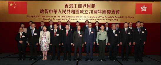 本網訊 9月6日,我辦副主任譚鐵牛應邀出席香港工商界同胞慶祝中華人民共和國成立70周年國慶酒會,並與香港特區署理行政長官張建宗、外交部駐港特派員公署副特派員趙建凱、解放軍駐港部隊副司令員田永江等共同擔任主禮嘉賓。香港工商界同胞慶祝中華人民共和國成立70周年籌委會主席團成員以及香港工商界人士400餘人出席酒會。