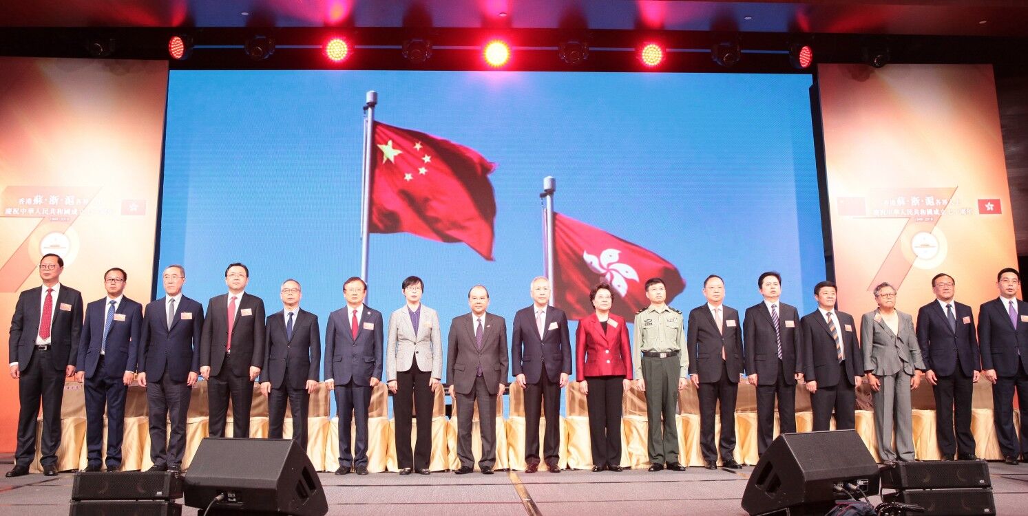 本網訊 9月5日晚,香港上海總會、江蘇旅港同鄉聯合會與香港浙江省同鄉會聯合會在香港會展中心舉行香港蘇浙滬各界人士慶祝中華人民共和國成立70周年晚宴。我辦副主任仇鴻應邀出席,並與特區政府署理行政長官張建宗、民政事務局局長劉江華、中央統戰部三局副局長潘紅偉、江蘇省委統戰部部長楊岳、香港江蘇社團總會會長唐英年、全國人大原常委范徐麗泰等嘉賓共同主禮。蘇浙滬社團代表及香港社會各界知名人士等近千人出席慶典活動。