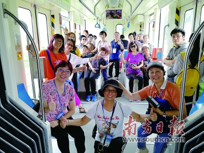 港澳職工乘坐廣州地鐵感受「廣州速度」。(圖片來源:廣東省總工會)