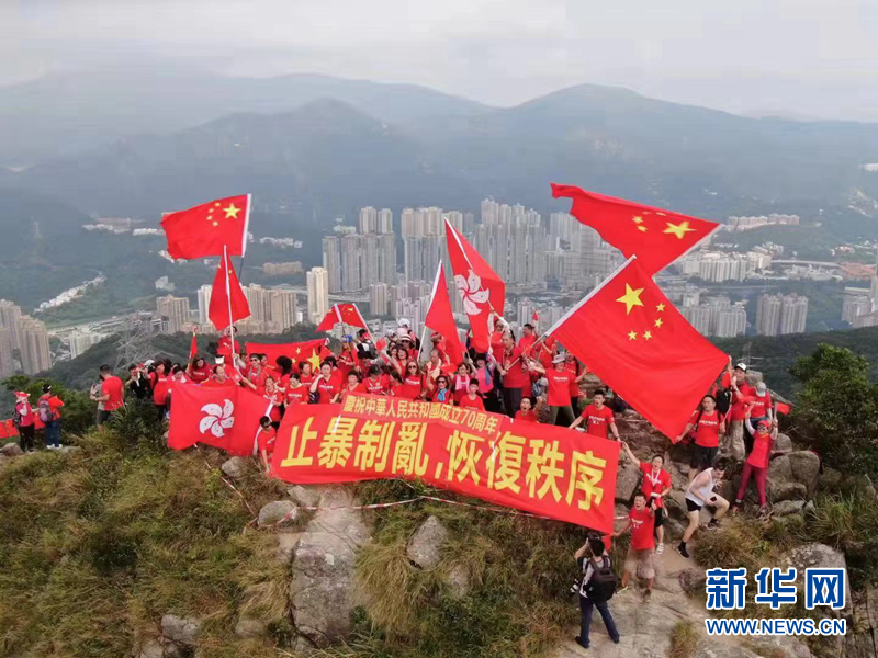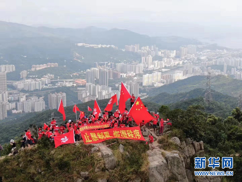 9月14日,香港獅子山上,國旗飄揚。