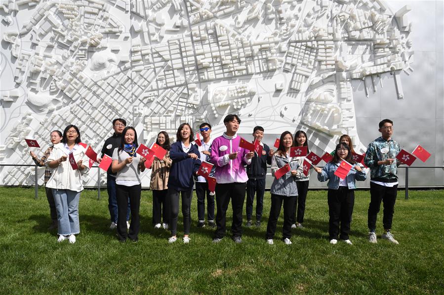 9月19日,在北京讀書的香港學子在北京世園會香港園合唱歌曲《我和我的祖國》。 當日,2019年中國北京世界園藝博覽會「香港日」活動在北京世園會園區舉行。 新華社發(任超攝)