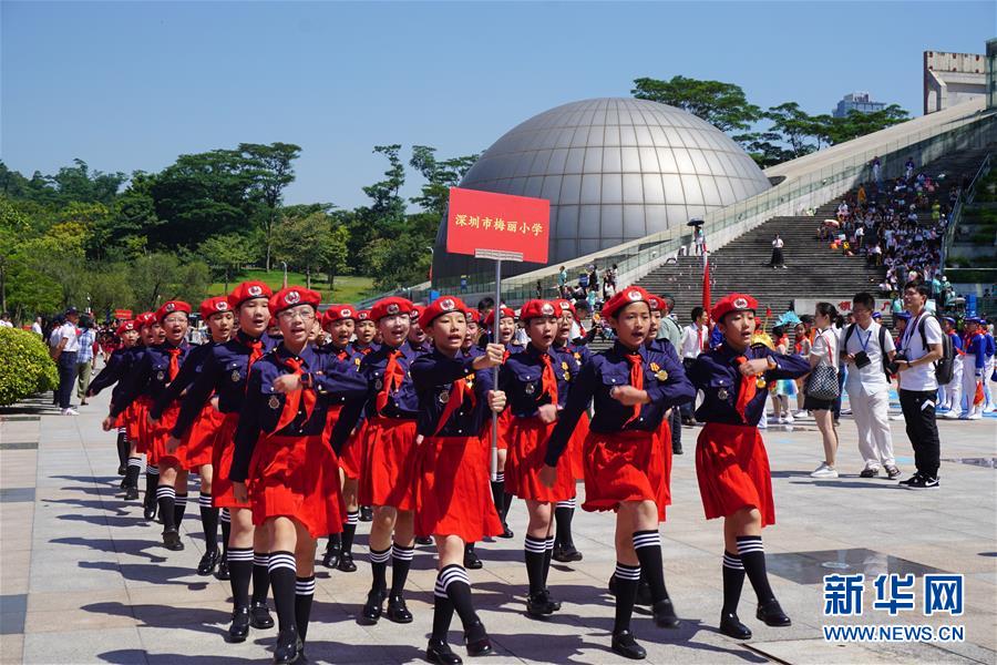 9月21日,深圳市梅麗小學學生進行中式步操展示。(新華社 王曉丹 攝)