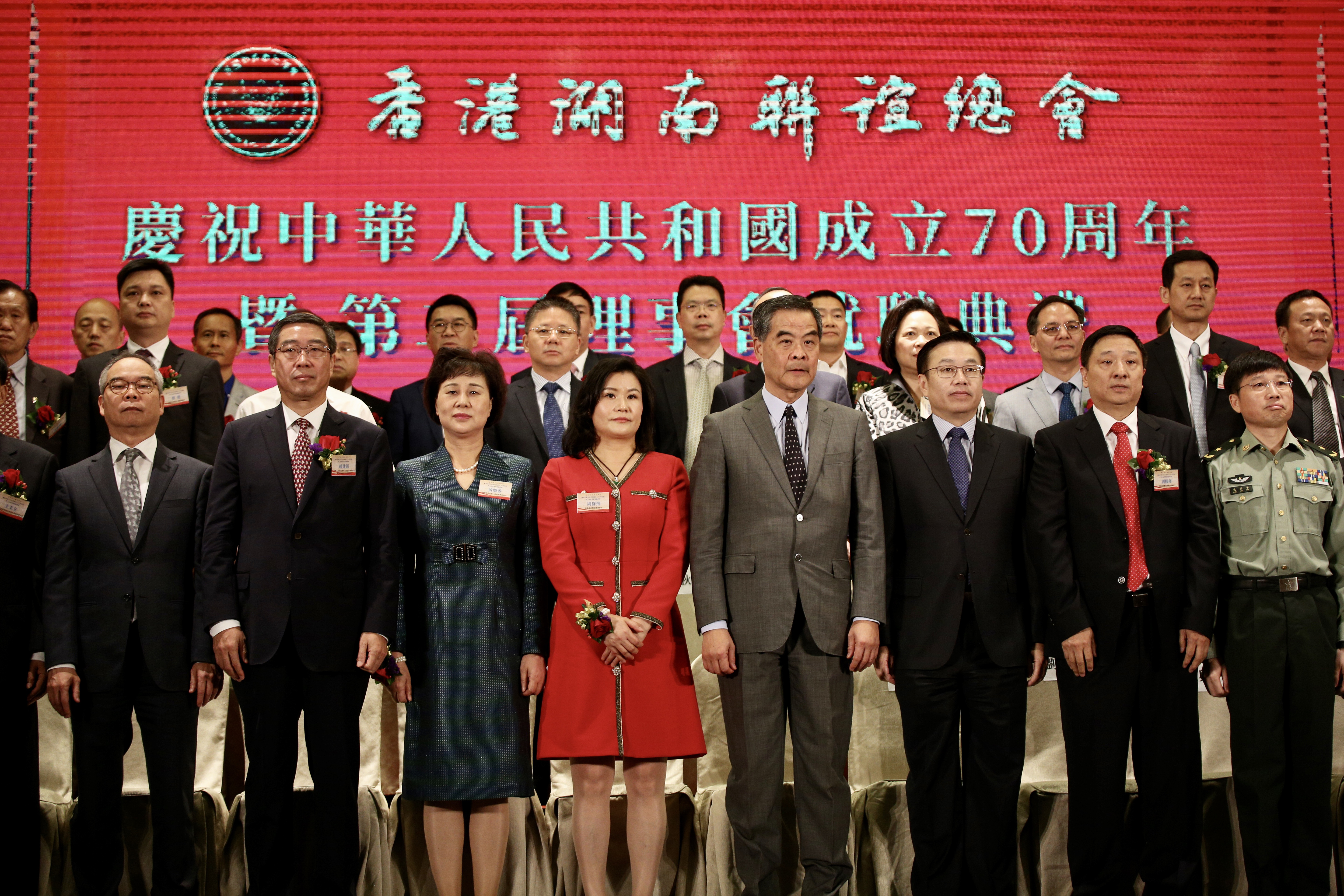 本網訊 9月22日,我辦副主任何靖應邀出席香港湖南聯誼總會慶祝中華人民共和國成立70周年暨第二屆理事會就職典禮,並與全國政協副主席梁振英、特區政府民政事務局局長劉江華,湖南省委常委、統戰部長黃蘭香,外交部駐港特派員公署副特派員趙建凱、駐港部隊政治部主任仇興平等共同主禮。在港湘籍鄉親和各界嘉賓700餘人出席活動。