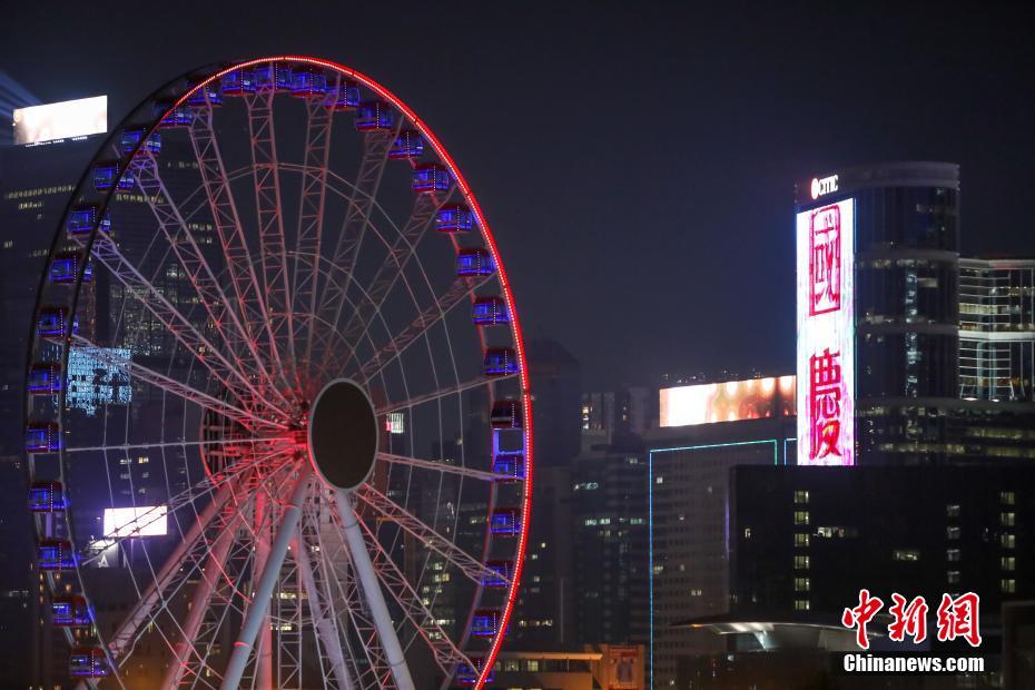 香港第一高樓等多座標誌性建築顯示巨幅國慶標語