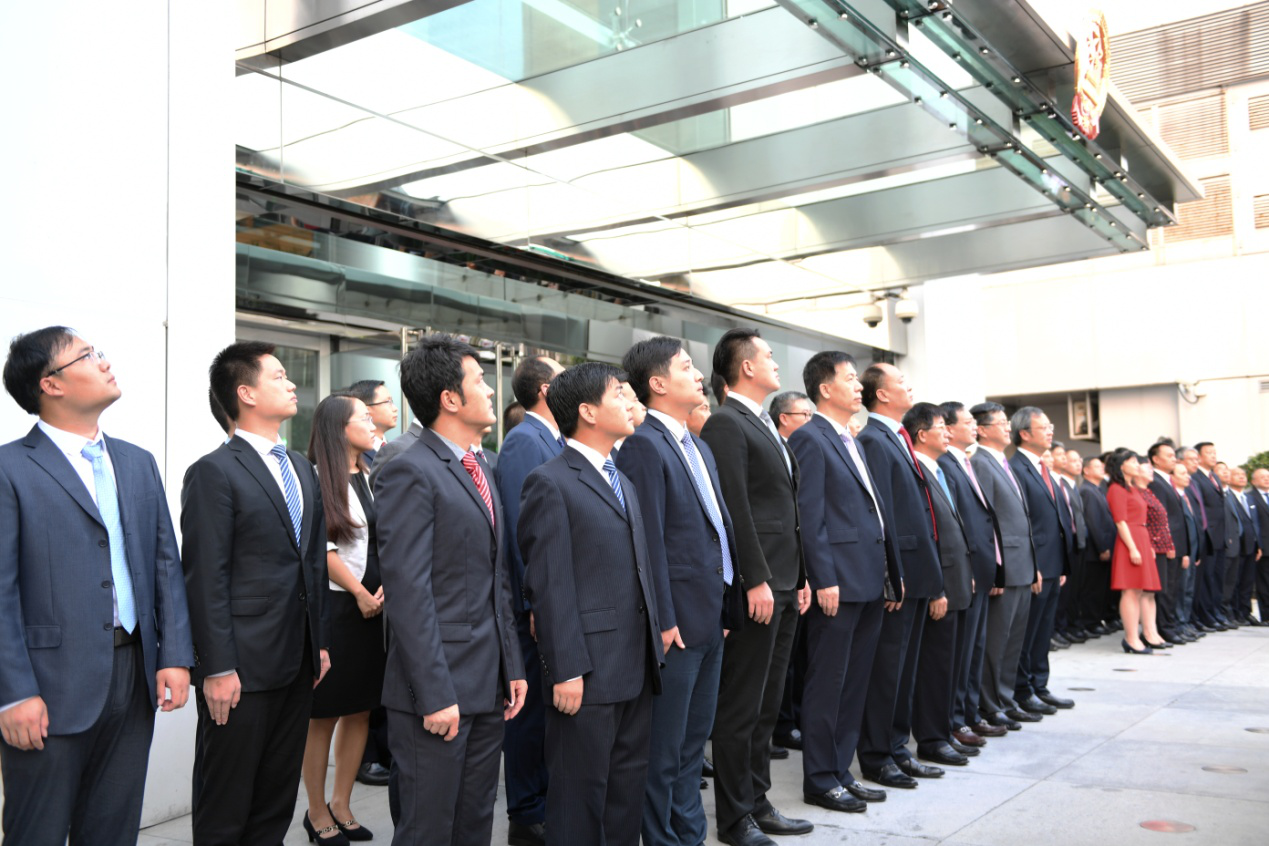 在場人員向國旗行注目禮。(圖片來源:中央政府駐港聯絡辦)