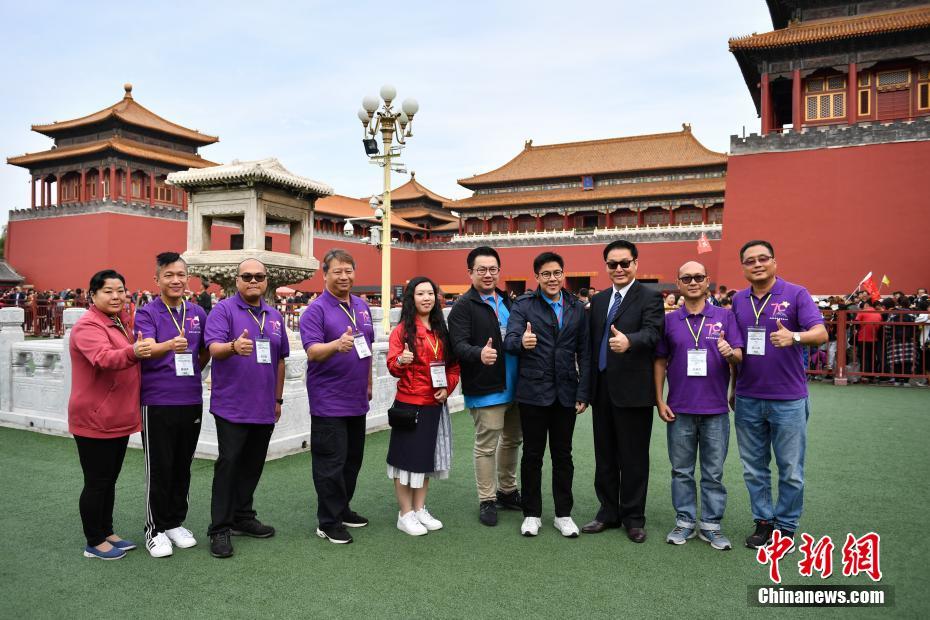 10月6日,香港各界青少年訪京團一行參訪天安門國旗護衛隊。據悉,訪京團由來自香港青少年軍總會、香港少年領袖團、香港交通安全隊、香港童軍總會、香港升旗隊總會等多個香港製服團體的青少年組成。圖為香港各界青少年訪京團團長霍啟剛(右4)與部分參訪者合影留念。(中新社 崔楠 攝)