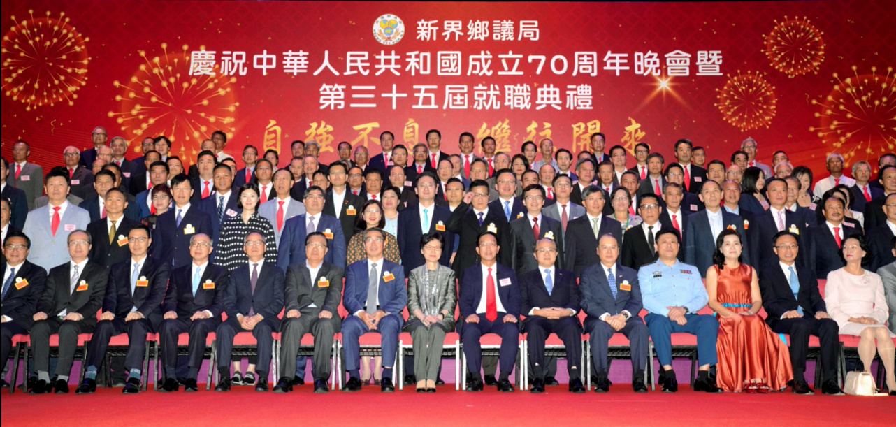 本網訊 10月11日,我辦主任王志民應邀出席新界鄉議局舉辦的慶祝中華人民共和國成立70周年晚會暨第35屆執委會就職典禮,並與香港特區行政長官林鄭月娥、特區政府政務司司長張建宗、外交部駐港公署副特派員趙建凱、解放軍駐港部隊政治工作部副主任陳貴斌、全國人大常委譚耀宗及特區政府民政事務局、運輸及房屋局等部門負責人共同主禮。