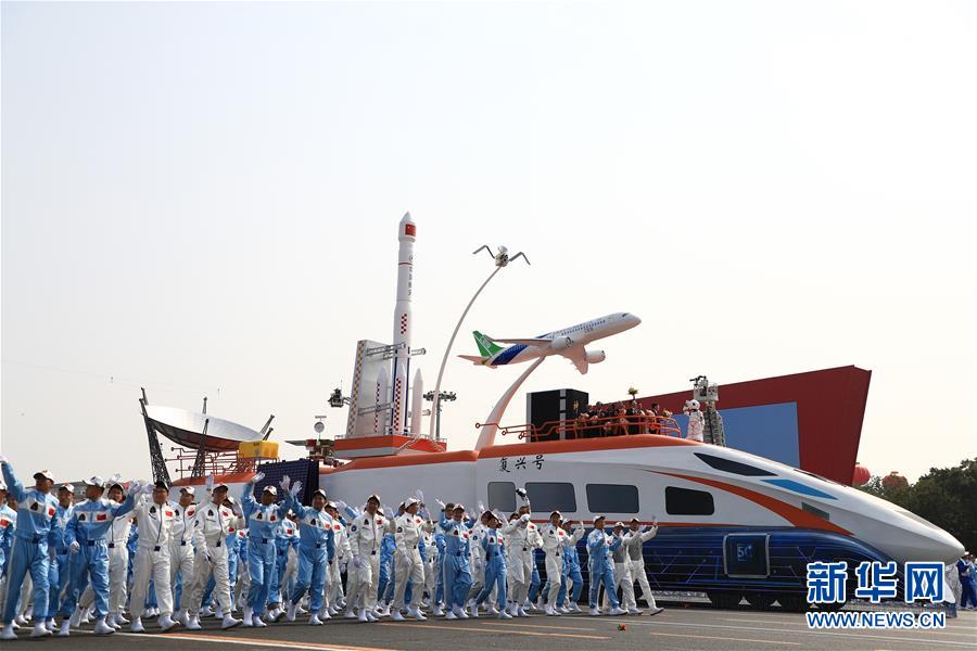 10月1日上午,慶祝中華人民共和國成立70周年大會在北京天安門廣場隆重舉行。這是「創新驅動」方陣。(新華社 劉續 攝)
