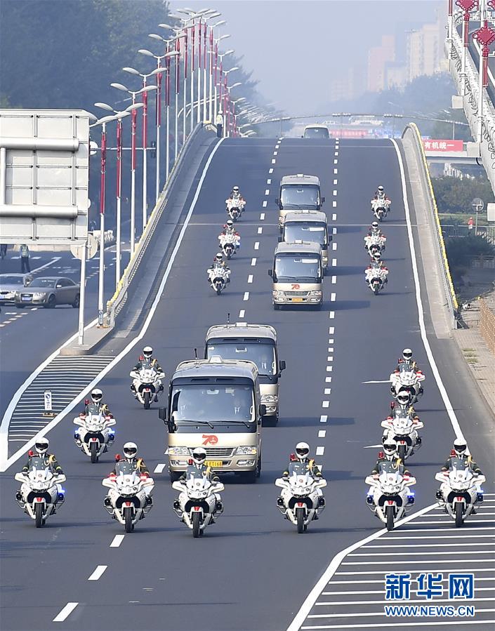 9月29日上午,國家勳章和國家榮譽稱號獲得者乘坐禮賓車從住地出發,在國賓護衛隊的護衛下,前往人民大會堂參加中華人民共和國國家勳章和國家榮譽稱號頒授儀式。(新華社 燕雁 攝)