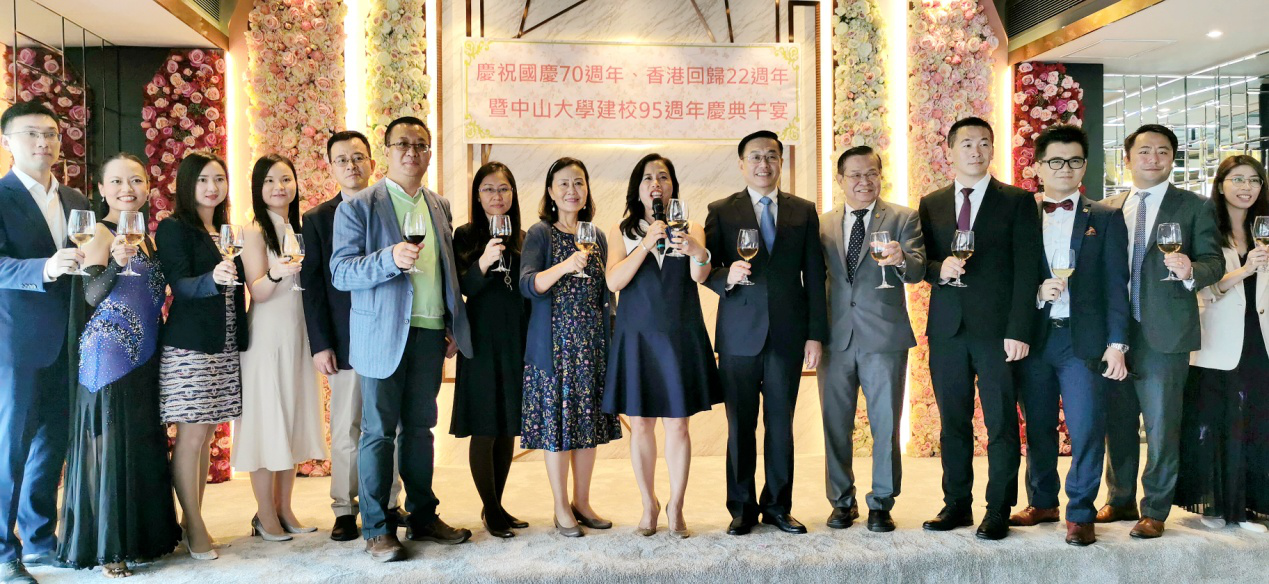 本網訊 11月3日,我辦副主任何靖出席中山大學香港校友聯合會慶祝國慶70周年暨中山大學建校95周年慶典,與中山大學教授、前副校長李萍共同擔任主禮嘉賓,逾200名校友參加活動。