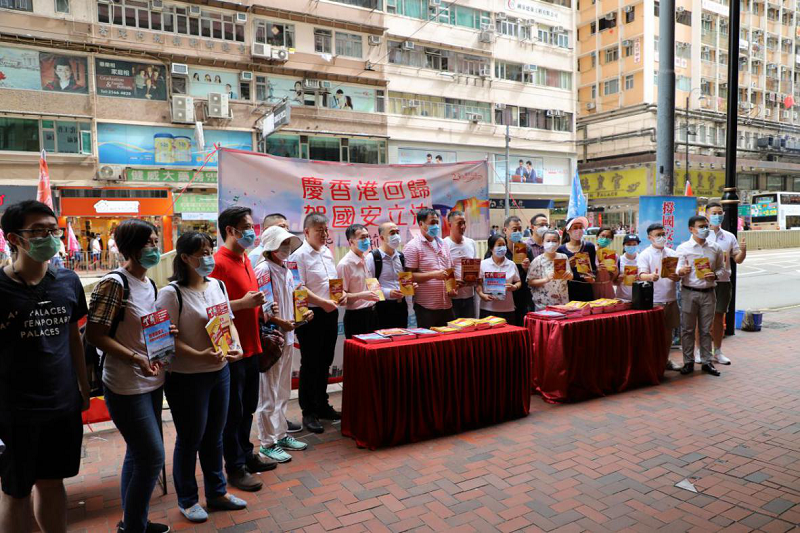 香港廣東社團總會則在全港十八區,擺放了二百多個宣傳站點,向市民介紹「香港國安法」的益處。香港廣東社團總會主席龔俊龍表示,中央這次果斷出手是非常合理的,香港國安法打擊的是極少數的勾結國外勢力、顛覆國家安全的分裂分子,對絕大多數奉公守法市民而言是極大的幫助。