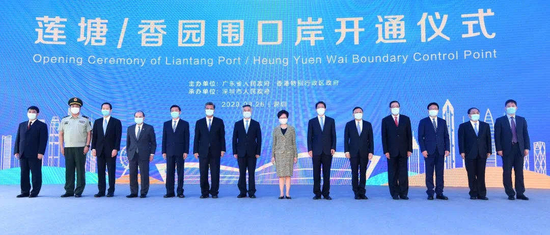 「蓮塘/香園圍口岸在這個特別的日子裏開通,別具意義,象徵着深港兩地日益密切的聯繫,是深港合作的一個重要里程碑,為粵港澳大灣區建設提供了極為有利的基建基礎。」出席開通儀式的香港特區行政長官林鄭月娥説。
