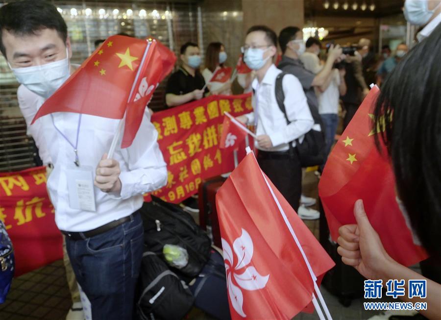 9月16日,在內地核酸檢測支援隊住宿酒店,香港市民自發歡送支援隊離港。(新華社記者 王申 攝)
