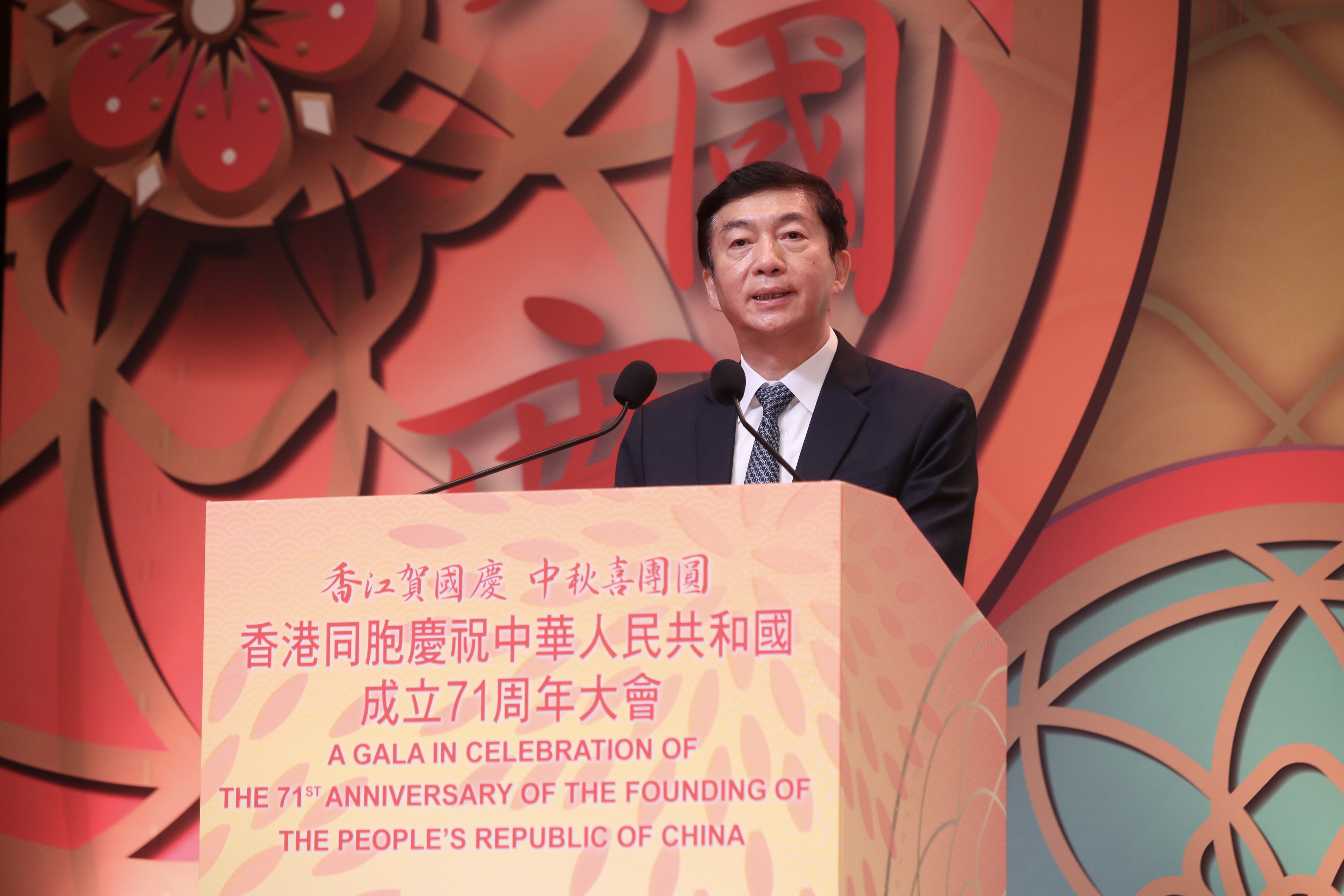 明天是中華人民共和國71周年華誕,也恰逢中華民族闔家團聚的中秋佳節。此刻我們在香江之濱,與祖國人民一起歡慶,「家」的氛圍格外濃烈、「國」的涵意更顯厚重。在這裏,我代表中央政府駐港聯絡辦全體同仁,向各位嘉賓、各位朋友以及廣大香港市民,致以節日的祝福!