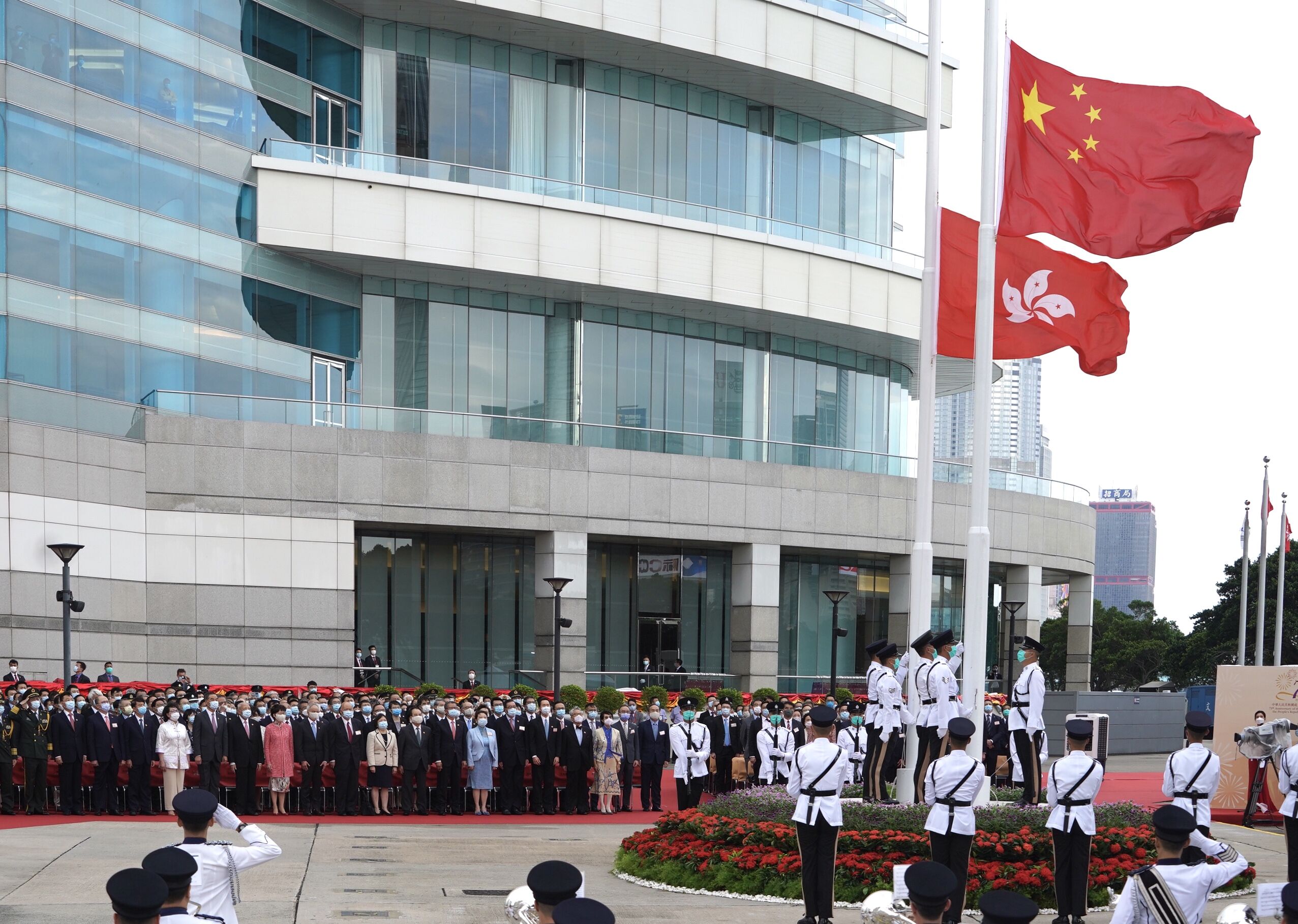 升旗儀式上午8時在金紫荊廣場舉行。全國政協副主席董建華和梁振英、香港特區行政長官林鄭月娥、香港中聯辦主任駱惠寧、中央駐港維護國家安全公署署長鄭雁雄、外交部駐港特派員公署特派員謝鋒、解放軍駐港部隊司令員陳道祥和政委蔡永中,以及終審法院首席法官、特區政府主要官員、香港中聯辦副主任陳冬、仇鴻、譚鐵牛、何靖和社會各界知名人士等出席。