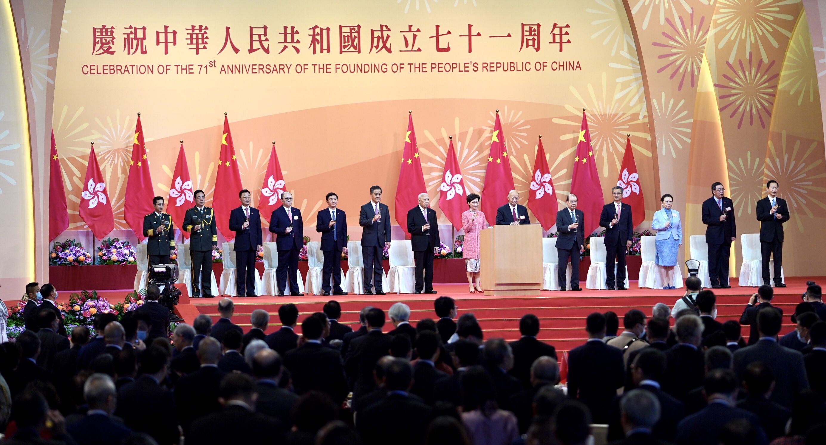 10月1日,香港特區政府在會展中心舉行酒會,慶祝中華人民共和國成立71周年。(圖片來源:新華社)