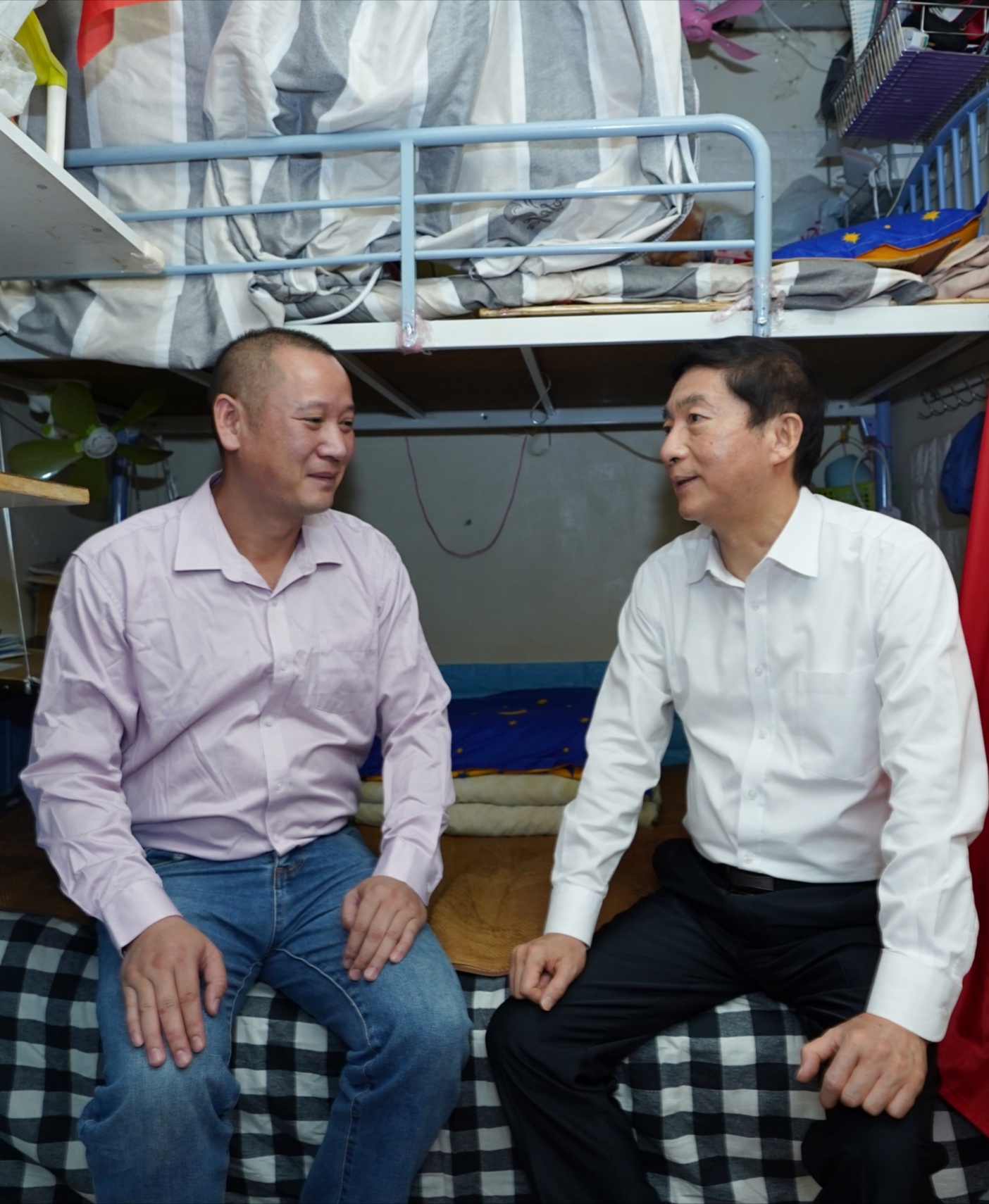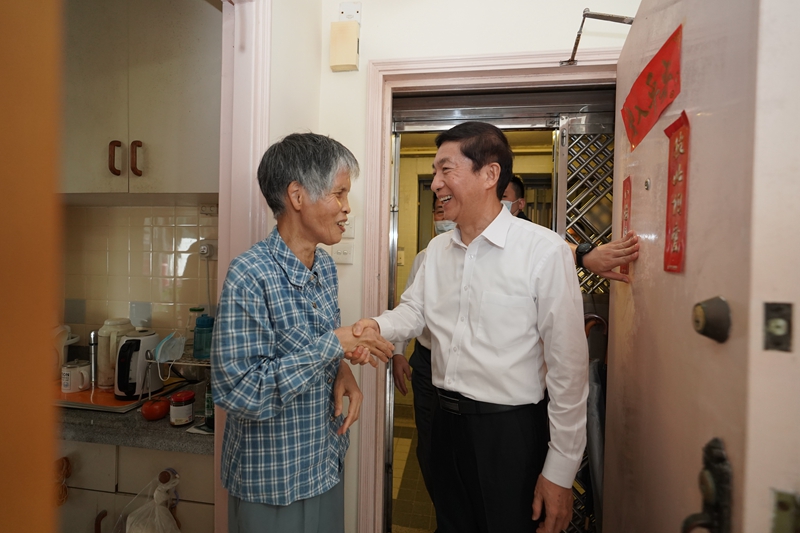 駱惠寧與住在九龍深水埗劏房的徐天民親切交談。(圖片來源:中央政府駐港聯絡辦)