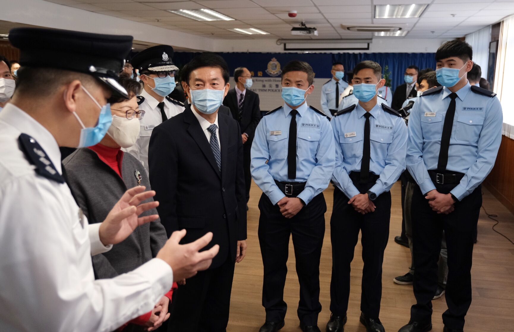 駱惠寧主任到西九龍總區尖沙咀警署慰問。(圖片來源:新華社)