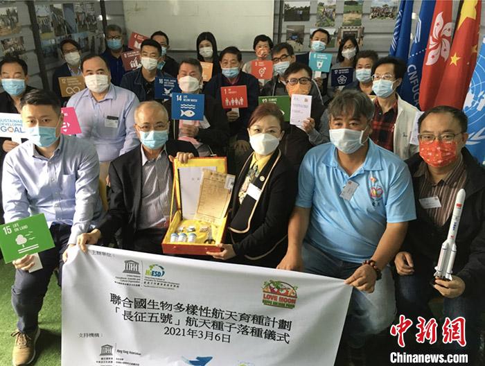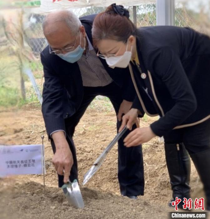 香港特區政府前教育局局長吳克儉和愛月開心假日農場負責人張達成一同開封了證物袋,並從中取出三款航天種子,分別是蝶豆花、秋葵和旱金蓮,多名嘉賓隨後將種子種在農場的土壤中。