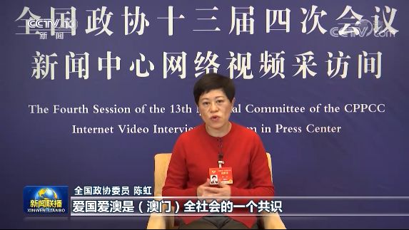 全國政協委員 陳虹:愛國愛澳是澳門全社會的一個共識。從幼兒園開始我們就是從情感上面要我們小孩子認同自己的國家。升國旗、唱國歌,另外小學高年級、中學、大學等等,都要把憲法跟基本法納入到課堂當中,讓他知道只有「一國」才有「兩制」。這樣子我相信同學們對「愛國者治港」也好,「愛國者治澳」,有更進一步深刻的理解。