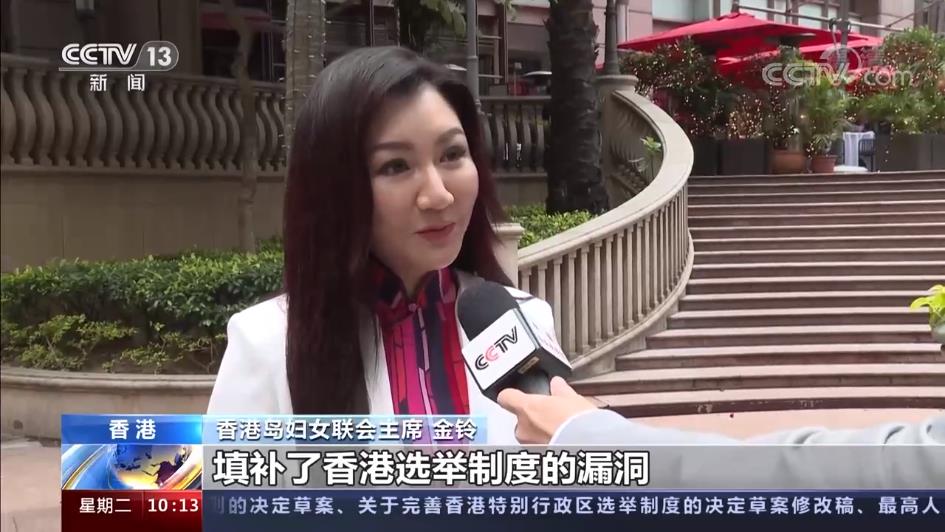 香港島婦女聯會主席 金鈴:「愛國者治港」可以説是填補了香港選舉制度的漏洞,可以説是順民心,得民意。我們看到在國家這樣一個大發展的前提下,「十四五」規劃涉及香港的部分,可以説是佔據了非常重要的部分。我們香港應該好好地把握這樣一個國家的支持,融入國家的發展計劃裏,為香港未來的發展注入活力。
