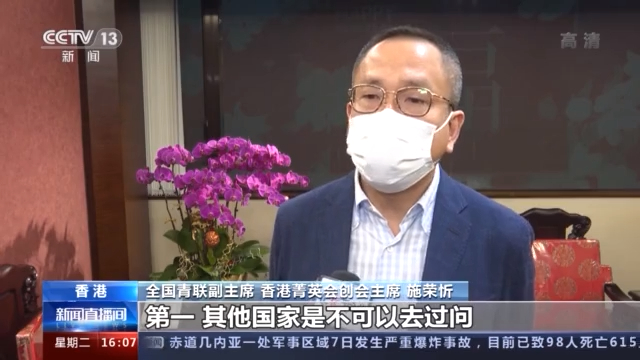 全國青聯副主席、香港菁英會創會主席 施榮忻:堵塞多年的法律漏洞,第一,其他國家是不可以去過問,也不關他們的事,這個是我們自己一家人的事情。第二,我感覺這個也是我們香港愛國愛港陣營或者是希望平平淡淡生活的老百姓多年來的期望。