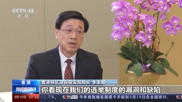 香港特區政府保安局局長 李家超:你看現在我們的選舉制度的漏洞和缺陷,帶來什麼問題呢?與外國勾結的人也可以進入我們現在憲制的權力裏面,這些破壞很大,所以現在「愛國者治港」就會結束這些破壞、這些紛亂,這才可以解決我們香港的很多問題,恢復我們的民生、恢復我們的經濟,融入國家大局。