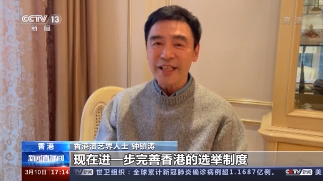 香港知名演藝界人士 鐘鎮濤:現在進一步完善香港的選舉制度,讓香港社會的民生、經濟、文化等等各層面的問題都得到更好的改善,促進香港更長遠的健康發展。