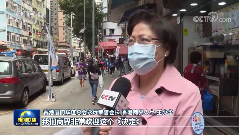 香港廈門聯誼總會永遠榮譽會長、香港商界人士 王少華:這一次決定非常及時和有力,得到我們廣大市民的全力支持,我們商界非常歡迎這個《決定》,這將為我們商界帶來一個平穩的、和諧的發展環境。