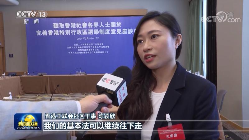 香港工聯會社區幹事 陳穎欣:第一點我們就是堅定地支持全國人大的《決定》;第二點就是讓我們香港的「一國兩制」,我們的基本法可以繼續往下走,也是可以行穩致遠的,走下來還是要靠我們自己的努力去乘風破浪,我們年輕人希望可以出一份力。